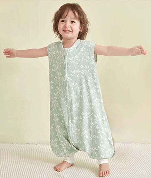 Housbay kids sleeveless sleeping bag with leg, summer baby sleepwear in room, 100% cotton, toddler anti-kick quilt